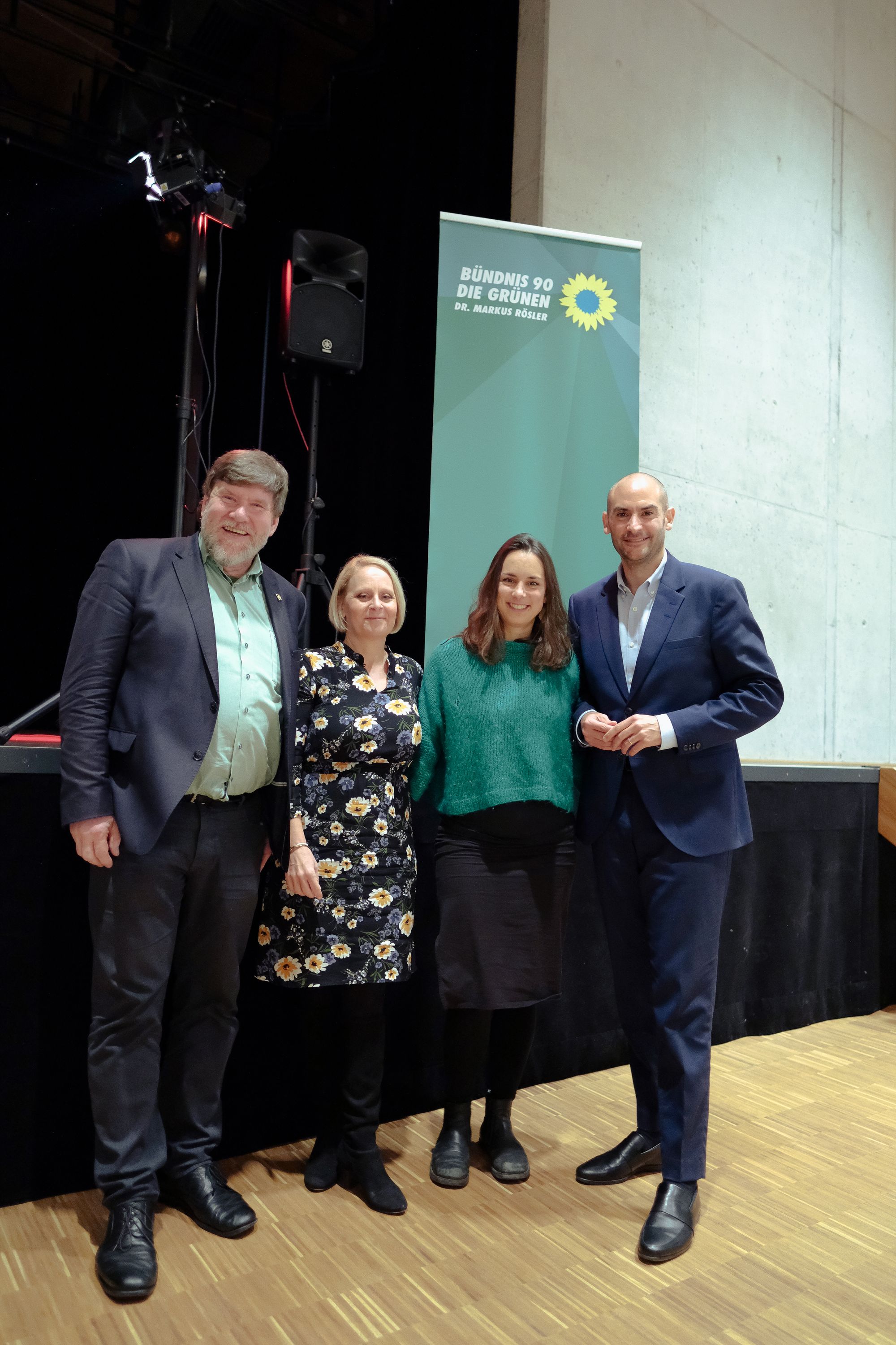Zum Abend wurde zu einer Diskussion mit dem Titel: "Investitionen in unsere Zukunft - zwischen Schuldenbremse und Klimakrise" in die Vaihinger Waldorfschule eingeladen. Auf dem Podium: Finanzminister Bayaz und die, aus Rheinland-Pfalz angereiste Transformationsforscherin und Unternehmensberaterin Dr. Hannah Heller sowie Markus Rösler, finanzpolitischer Sprecher der grünen Landtagsfraktion. Die Moderation des Abends übernahm Meike Günter, grüne Landtagskandidatin für Vaihingen/Enz bei der Landtagswahl 2026.